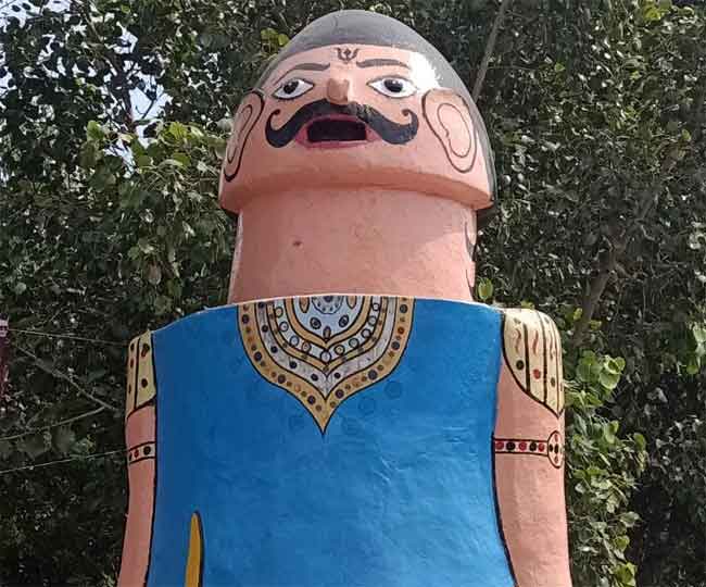 गांव में लगा सीमेंट का कुंभकर्ण का बुत।