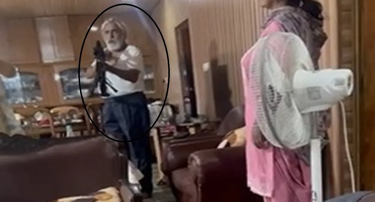 वायरल वीडियो में राइफल ताने खड़ा आरोपी।