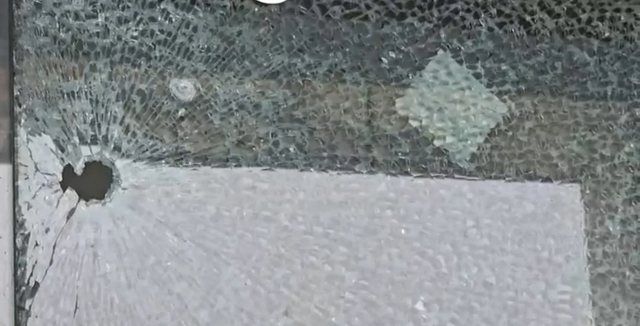 इमिग्रेशन सेंटर पर गोली लगने से टूटा कांच।
