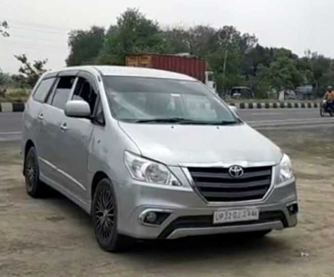नानक ढाबे के पास खड़ी यूपी पुलिस टीम की गाड़ी। (जागरण)