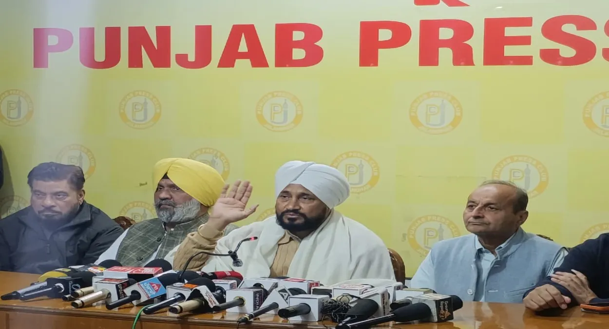 जालंधर में प्रेस कॉन्फ्रेंस के दौरान बात रखते हुए पूर्व सीएम चरणजीत सिंह चन्नी।