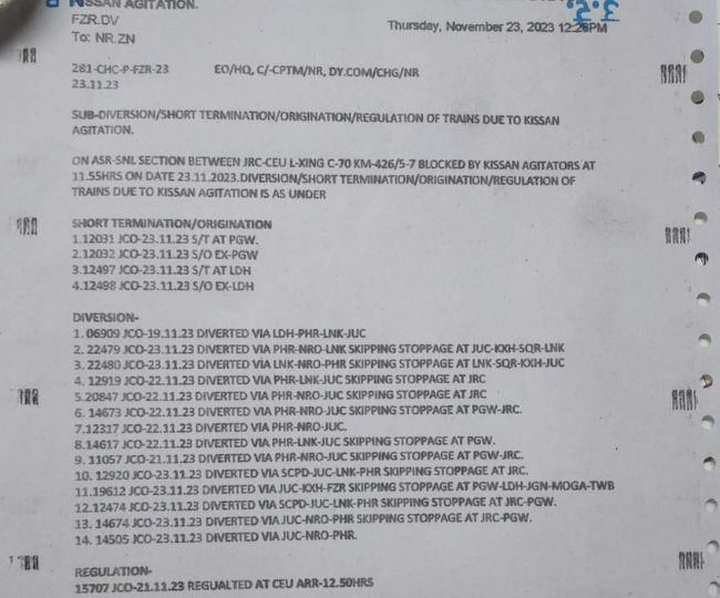 Farmers Strike: फगवाड़ा के पास रोकी गई अमृतसर शताब्दी, 14 ट्रेनें डायवर्ट; गन्ने पर MSP बढ़ाने के लिए किसानों का धरना जारी