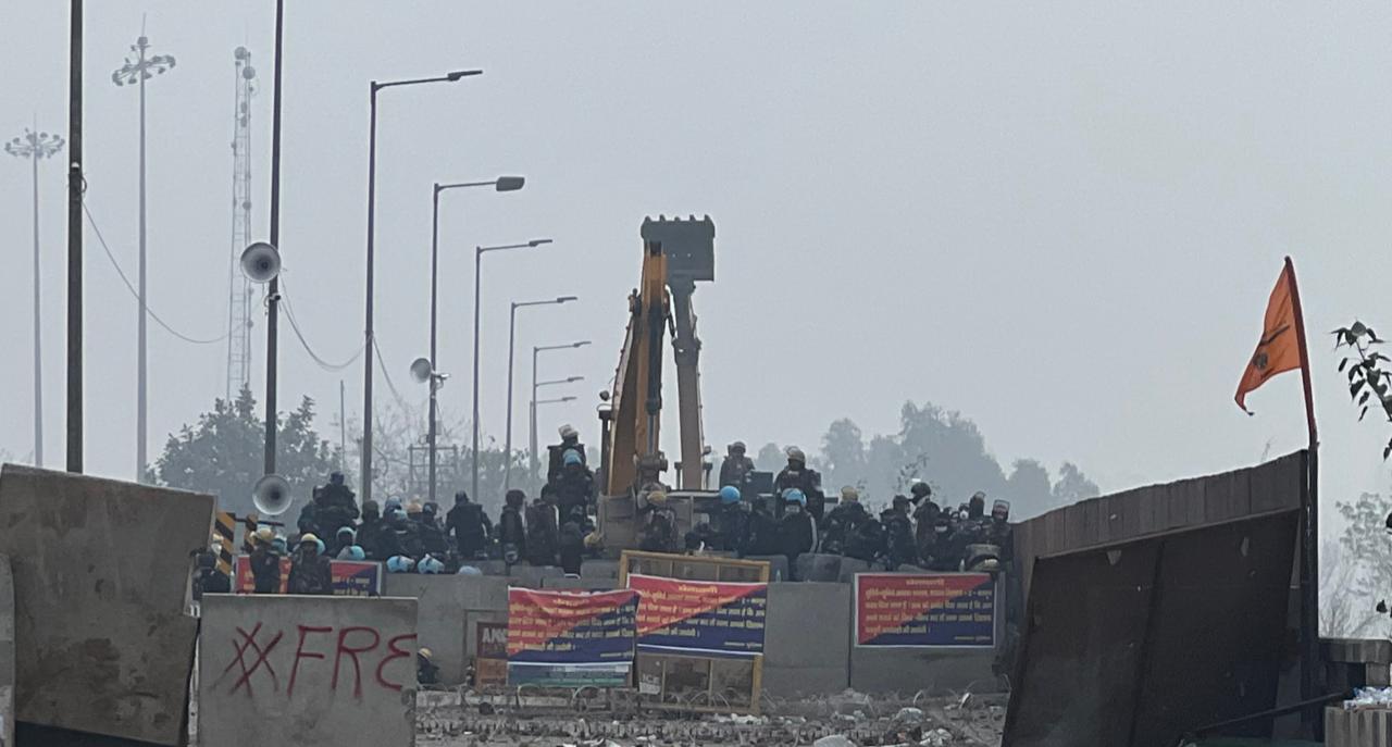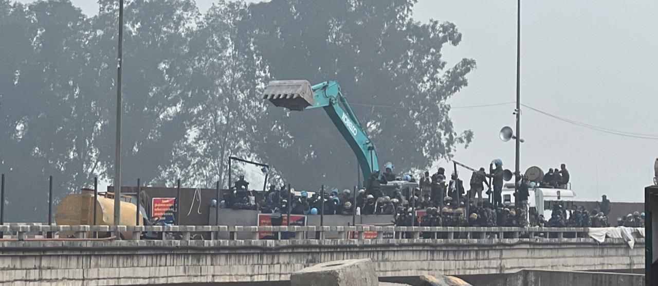 शंभू बॉर्डर: पोकलेन मशीन से बैरिकेड्स हटाते प्रदर्शनकारी