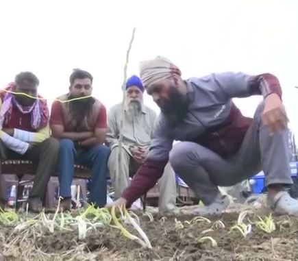 किसानों का 'दिल्ली चलो' मार्च: किसानों का एक समूह विरोध स्वरूप पंजाब-हरियाणा शंभू सीमा पर प्याज की बुआई कर रहा है।