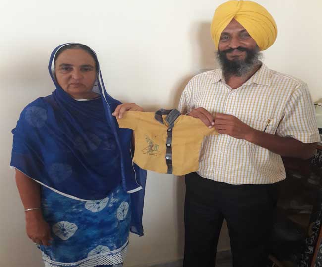 जन्‍म के बाद हरमन को पहनाई गई शर्ट दिखाते उनके माता-पिता।