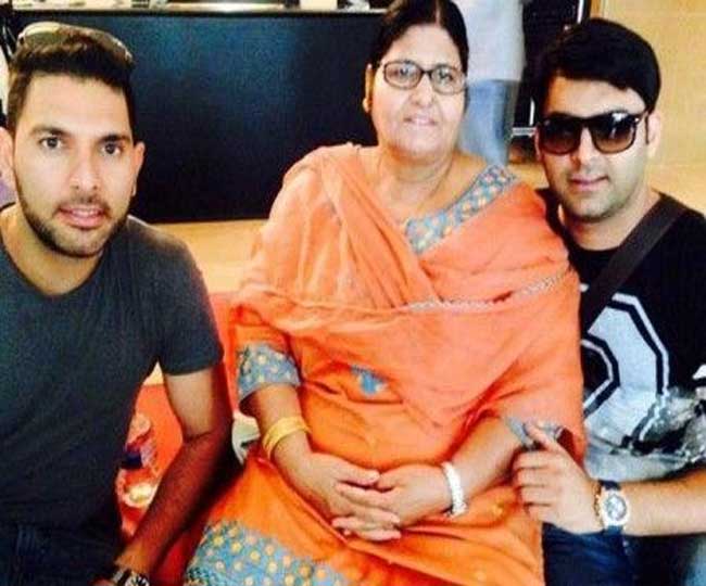 कपिल शर्मा अपनी मां और क्रिकेटर युवराज सिंह के साथ।
