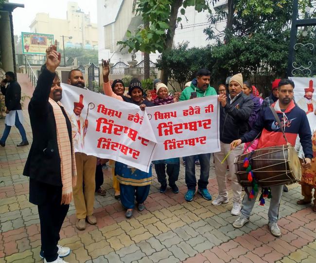 जालंधर में बिशप हाउस के बाहर भंगड़ा डालते हए ईसाई भाईचारे के सदस्य।