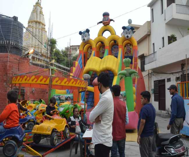 प्राचीन शीतला मंदिर में लगे मेले के दौरान सजे झूले।