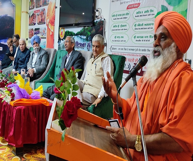 कपूरथला के सुल्तानपुर लोधी स्थित निर्मल कुटिया में पंजाब के प्रदूषण को दरपेश समस्या को लेकर आयोजित सेमीनार को संबोधित करते हुए संत बलबीर सिंह सीचेवाल।