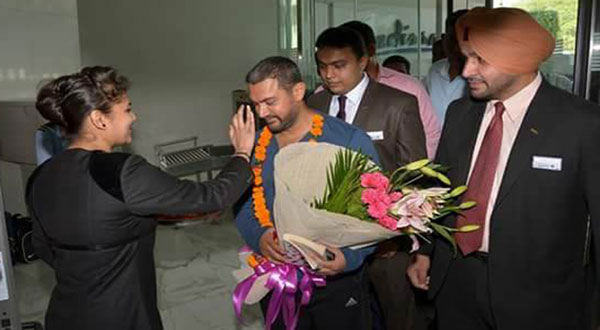 होटल में आमिर का स्वागत करती एक महिला कर्मी।