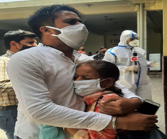 सतीश कौल की आठ साल से देखरेख कर रही सत्या देवी और उनका स्टूडेंट मनदीप विलाप करते हुए।