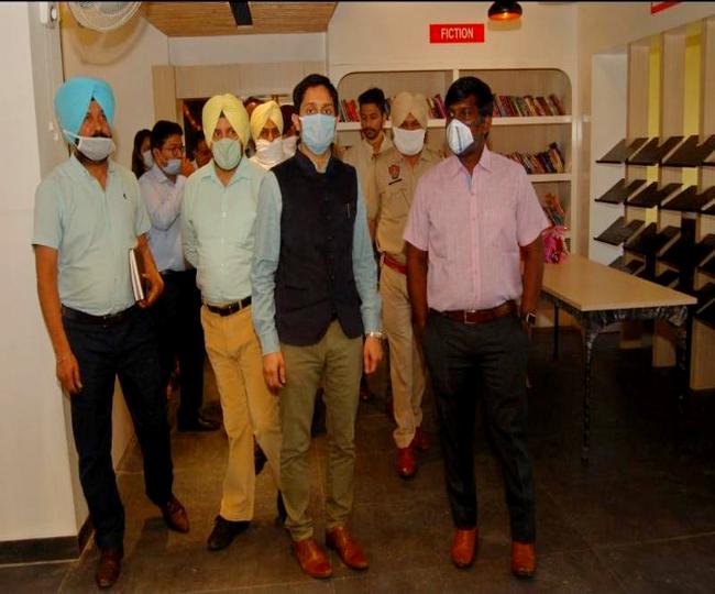 'द यूथ लाइब्रेरी' का दौरा करने पहुंचे डीसी बी. श्रीनिवासन व एडीसी डी परमवीर सिंह। -जागरण