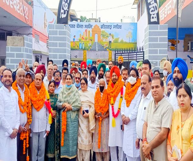 सरहिंद नगर कौंसिल के नए पदाधिकारियों के साथ विधायक कुलजीत सिंह नागरा।