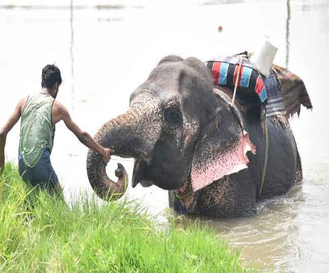 देखें तस्वीरें: जिद पर अड़ी हथिनी साथी के बुलाने पर ही आई पानी से बाहर
