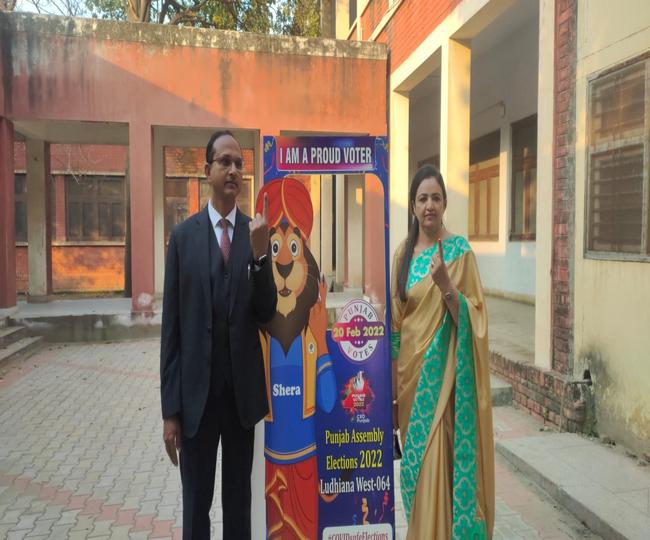 लुधियाना के डीसी वरिंदर सिंह शर्मा ने अपनी पत्नी सहित सरकारी महिला कालेज में अपना मतदान किया।