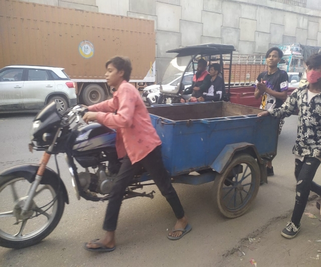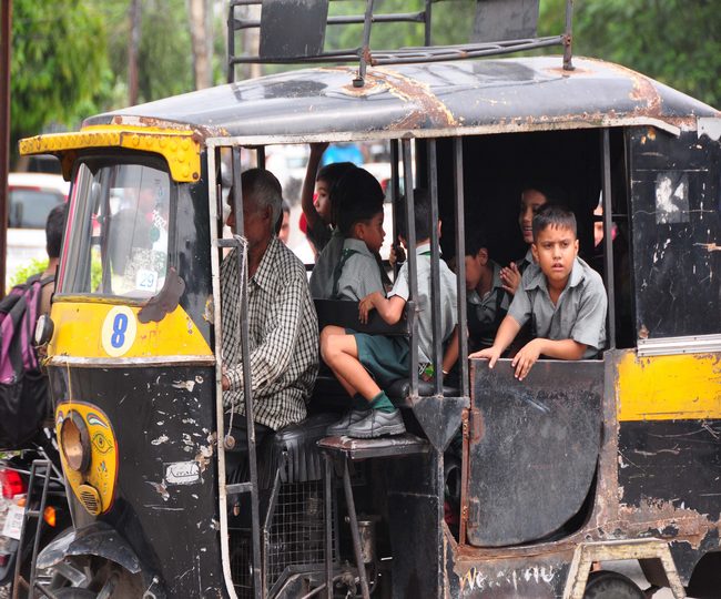 लुधियाना में खस्ताहाल आटो में बैठे स्कूली बच्चे।