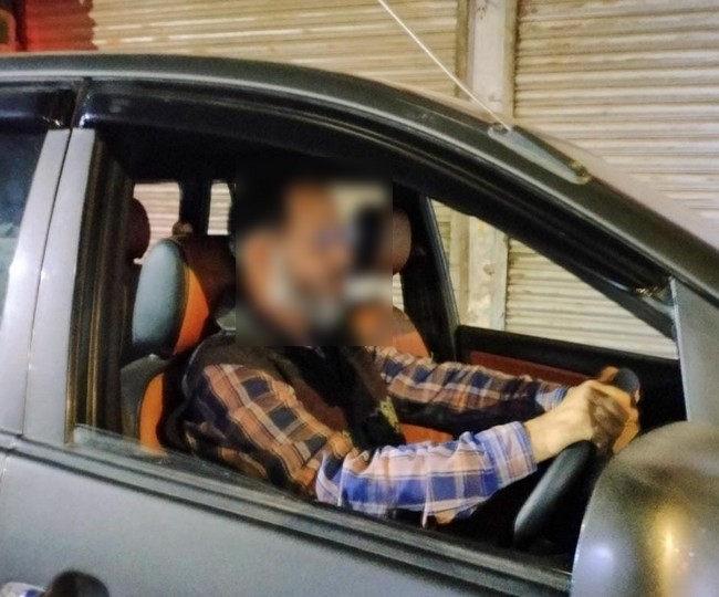 महानगर में बिना सीट बेल्ट लगाए सड़क से बेफिक्र होकर गुजरता एक कार चालक।