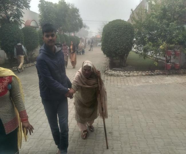 बुजुर्ग महिला मतदान करने जाती हुई। (जागरण)
