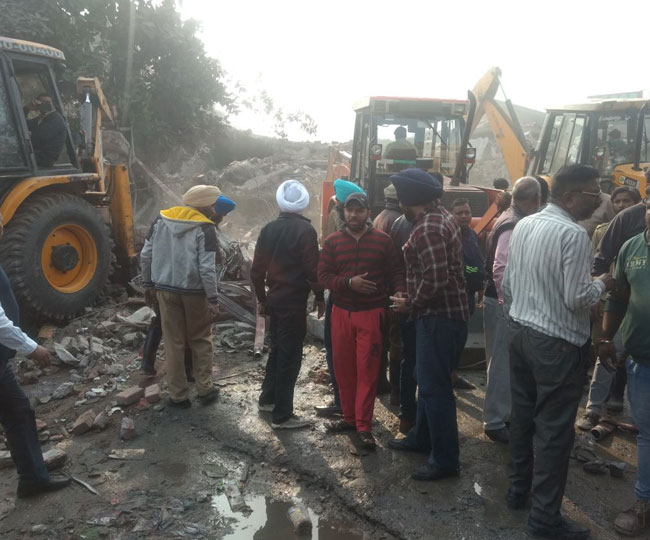 मौके पर पहुंची पंजाब पुलिस ने जीसीबी मशीनों की सहायता से मलबा हटाने का काम शुरू किया। जब तक एनडीआरएफ और सेना का बचाव दल मौके पर पहुंचा पुलिस ने एक व्यक्ति को जिंदा और एक शव बाहर निकाल लिया था। इसके बाद एनडीआरएफ और सेना के जवानों ने दो फायर कर्मियों के शव बाहर निकाले। मलबा हटाने के दौरान शाम को फिर आग की लपटें निकलने लगी। तत्काल फायर ब्रिगेड कर्मियों को फिर लगाया गया। बताया जाता है कि घटनास्थल से कैमिकल जलने की दुर्गंध आ रही थी, जो संभवत: फैक्टरी में इस्तेमाल किया जाता है।