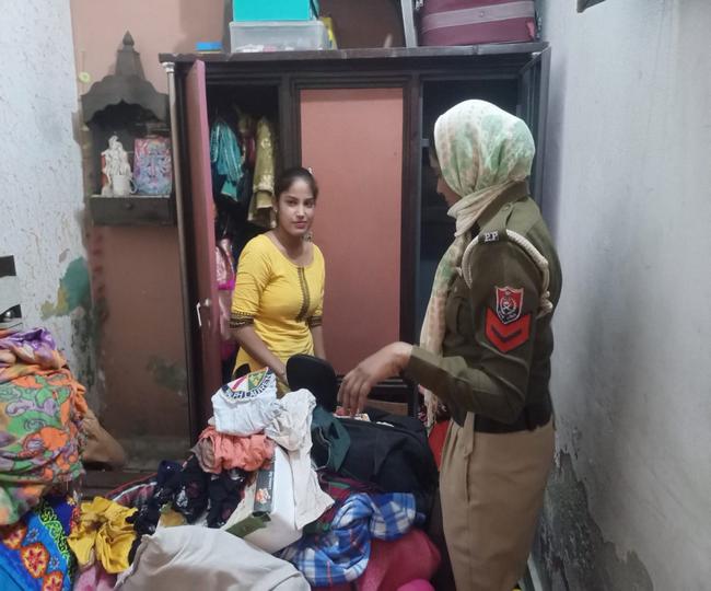 माेगा में एक घर की तलाशी लेता पुलिस जवान। (जागरण)