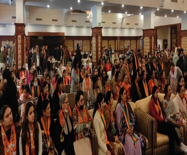 स्मृति ईरानी काे सुनने के लिए पहुंची महिलाएं। (जागरण)