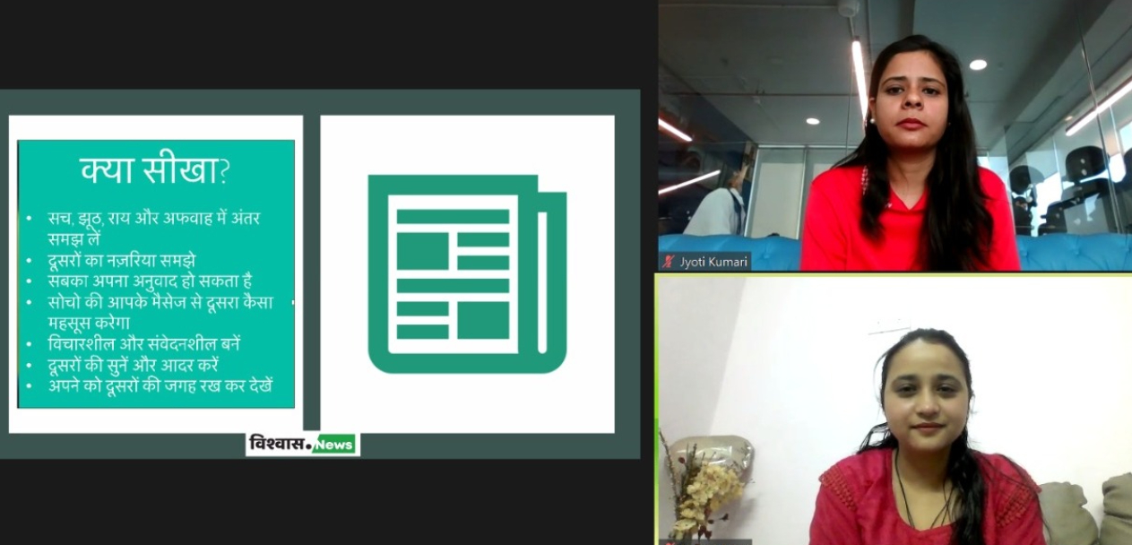 जागरण न्यू मीडिया की फैक्ट चेकिंग Viswas News ने आज यानी 28 फरवरी हरियाणा के रोहतक और पंजाब के लुधियाना के लोगों के लिए ऑनलाइन प्रशिक्षण का आयोजन किया। इस बीच विश्वास न्यूज के मीडिया साक्षरता अभियान सच के साथी सीनियर्स के अंतर्गत इस कार्यशाला को आयोजित किया गया। कार्यशाला में डिजिटल सेफ्टी के लिए जरूरी कदम उठाने जैसी भी जानकारियां भी प्राप्त कराई।