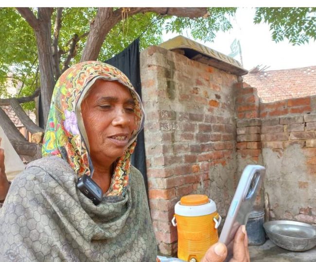 भाई गुरमेल सिंह से वीडियो काल पर बात करतीं पाकिस्तान की शकीना।