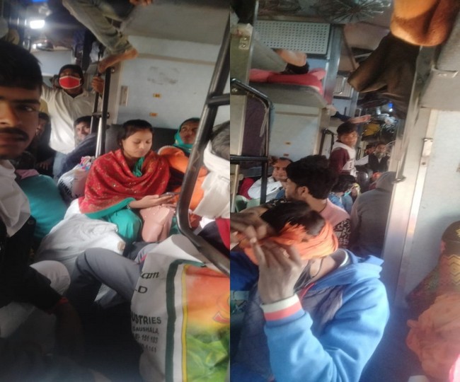 मजबूरी में लोग भेड़ बकरियों की तरह ट्रेनों की बोगियों में बैठे हुए हैं। रिजर्वेशन सीट होने से अधिकतर लोगों को आरक्षित टिकट नसीब नहीं होती है जिससे मजबूर होकर वेटिंग टिकट पर अमानवीय व्यवस्था भी कांप जाए। ट्रेनों में इस कदर यात्रियों को क्यों बिठाया जा रहा है इसका जवाब किसी अधिकारी के पास नहीं है।