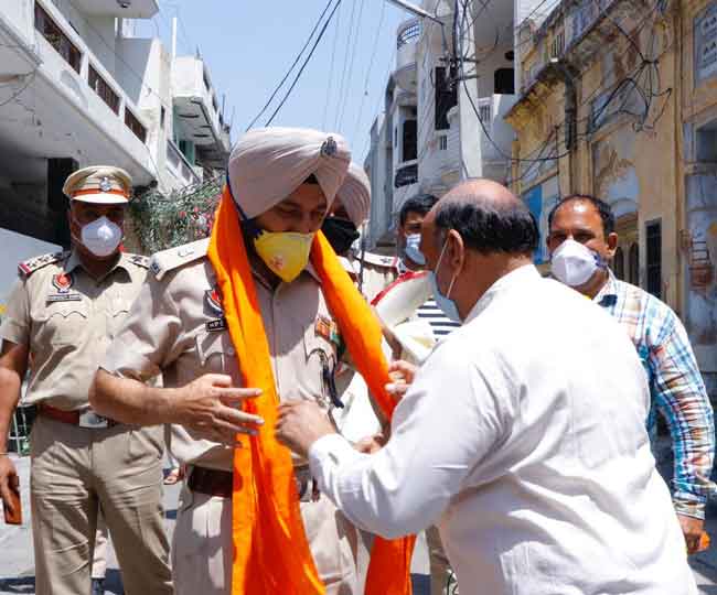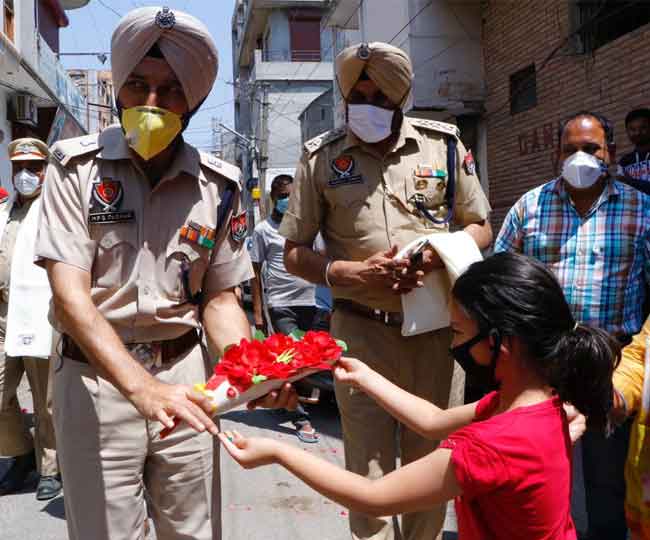बाद में लोगों के आग्रह पर एसपी (डी) हरिंदर पाल सिंह परमार, डीएसपी सिटी परमजीत सिंह, एसएचओ परमजीत सिंह रंधावा आदि न्यू टाउन क्षेत्र से पुलिस बल के साथ न्यू टाउन क्षेत्र से गुजरे तो लोगों ने छतों से उनके ऊपर पुष्पवर्षा कर व तालियां बजाकर स्वागत किया। संचित गोयल ने कोरोना मुक्ति का केक भी एसपी (डी) हरिंदर पाल सिंह परमार से कटवाकर कोरोना मुक्ति का जश्न मनाया।