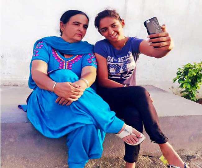 मां सतविंदर कौर के साथ हरमनप्रीत।