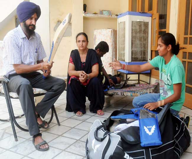 प्रैक्टिस की तैयारी: घर में परिजनों के साथ हरमनप्रीत।