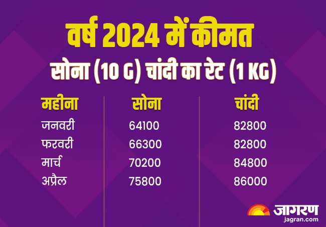 पिछले छह सालों की यदि बात करें तो स्वर्ण बाजार में सोने तथा चांदी के मूल्यों में बड़ा अंतर पाया गया है। साल-2018 में सोने का रेट जहां 34800 प्रति 10 ग्राम था वहीं अप्रैल- 2024 में इसकी कीमत बढ़ कर 75 हजार से अधिक हो चुकी थी। इसी प्रकार चांदी की कीमत साल 2018 में 38200 प्रति किलोग्रम से बढ़ कर साल अप्रैल -2024 में बढ़ कर इसकी कीमत 86 हजार प्रति किलोग्राम हो चुकी है।