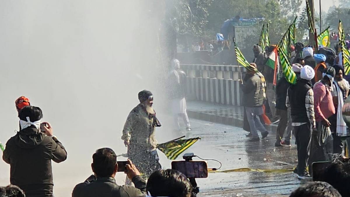 किसानों के आगे बढ़ने की कोशिश करने पर पुलिस लगातार पानी की बौछार कर रही थी। ठंड के बीच पानी से भीगे किसानों ने आरोप लगाया कि हरियाणा पुलिस छप्पड़ का पानी का किसानों पर डाल रही है। किसान फिर भी डटे हुए हैं और दिल्ली जाने की जद्दोजहद कर रहे हैं। हरियाणा पुलिस आंसू गैस के गोल दागने के लिए ड्रोन का भी इस्तेमाल कर रही थी।