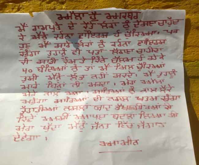 पोस्टर संबंधी गांव की पंचायत ने तुरंत सूचना पुलिस को दी। पुलिस ने मौके पर पहुंचकर दीवार पर लगा पोस्टर अपने कब्जे में ले लिया। लाल रंग की स्याही से लिखे पोस्टर पर अज्ञात व्यक्ति ने लिखा है कि वह अब तक 40 से अधिक व्यक्तियों को मिल चुका है। उसेे कोई नहीं ढूंढ सकता। वह सभी को मार कर ही मरेगा।