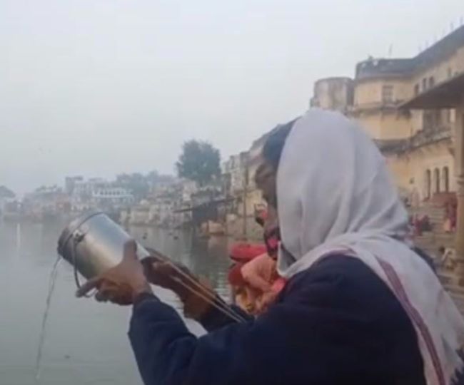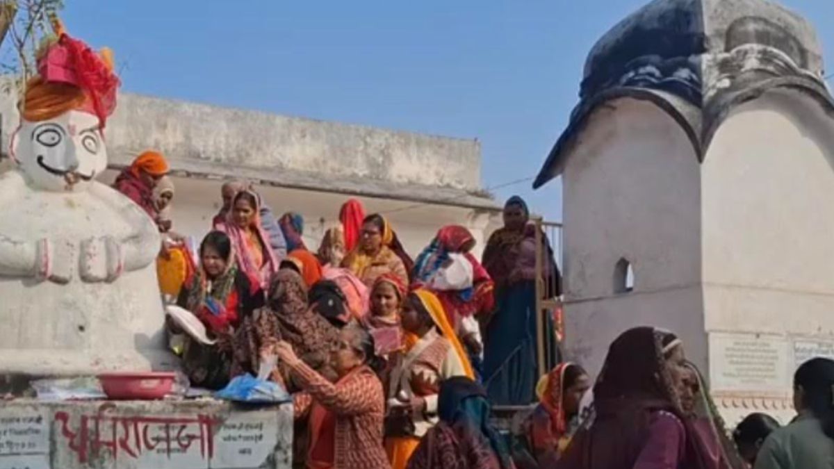 धर्मराज की पूजा अर्चना कर उन्हें एक कटोरी राई अर्पित की