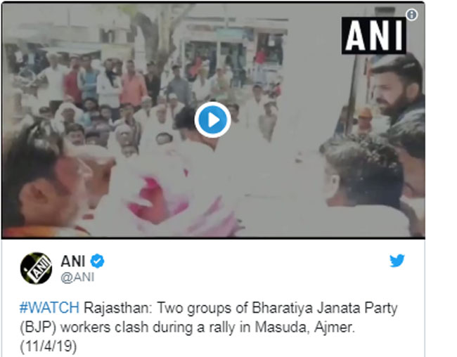 Election 2019 राजस्थान के अजमेर के मसूदा में बीजेपी के दो गुट आपस में भिड़ गए। इसके बाद दोनों गुटों में जमकर लात-घूंसे चले। पूरे घटनाक्रम का एक वीडियो ...और पढ़ें