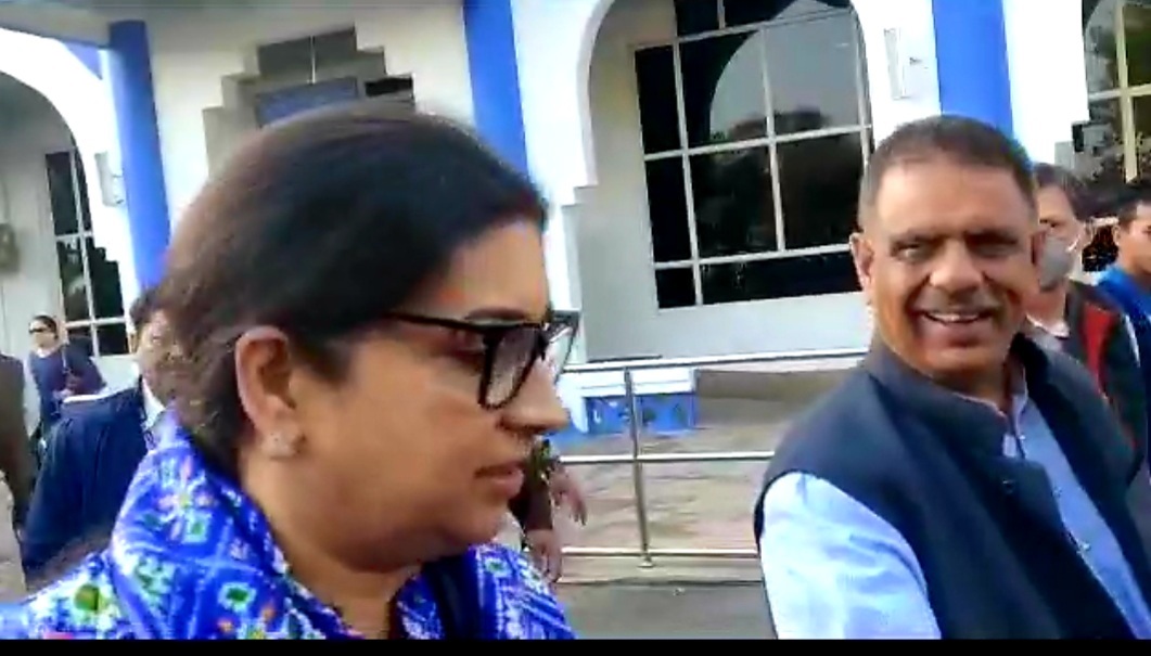 केंद्रीय मंत्री स्मृति ईरानी अपनी बेटी की शादी में शामिल होने के लिए बुधवार सवेरे जोधपुर पहुंची जहां राजस्थान भाजपा के नेता और पूर्व कैबिनेट मंत्री गजेंद्र सिंह खीवसर ने उनका स्वागत किया। जहां से वह खीवसर फोर्ट के लिए रवाना हो गए।