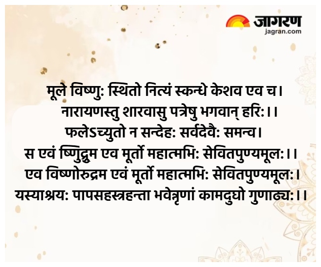 पीपल के पेड़ के महत्व बताते हुए इस श्लोक में कहा गया है कि, पीपल के पेड़ की जड़ में भगवान विष्णु, तने में केशव, शाखओं में नारायण, पत्तों में भगवान हरि और पीपल के फलों में सभी देवता का वास है। पीपल का वृक्ष स्वयं भगवान विष्णु का स्वरूप है। जो व्यक्ति पीपल की सेवा करते हैं उसे सभी पापों से मुक्ति मिल जाती है। इसके साथ ही पीपल के पेड़ में पितरों और तीर्थों का निवास भी होता है।