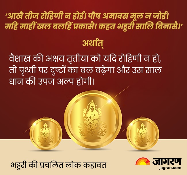 भड्डरी की प्रचलित लोक कहावत में कहा गया है कि - ‘आखै तीज रोहिणी न होई। पौष अमावस मूल न जोई। महि माहीं खल बलहिं प्रकासै। कहत भड्डरी सालि बिनासै।’ अर्थात् वैशाख की अक्षय तृतीया को यदि रोहिणी न हो, तो पृथ्वी पर दुष्टों का बल बढ़ेगा और उस साल धान की उपज अल्प होगी।