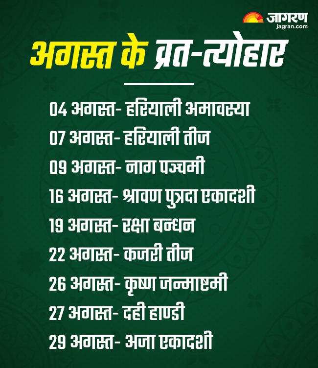 अगस्त 2024 में पड़ने वाले व्रत-त्योहार