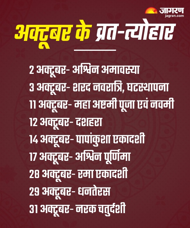 अक्टूबर 2024 में पड़ने वाले व्रत-त्योहार