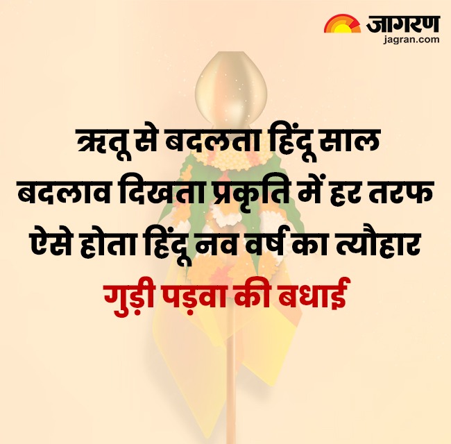धर्म डेस्क, नई दिल्ली। हिंदू पंचांग के अनुसार, चैत्र माह के शुक्ल पक्ष की प्रतिपदा से हिंदू नववर्ष की शुरुआत होती है। ऐसे में साल 2025 में 30 मार्च से हिंदू नववर्ष की शुरुआत हो रही है। इस दिन को अलग-अलग राज्यों में अलग-अलग नाम से जाना जाता है। मराठी में इसे गुड़ी पड़वा (Gudi Padwa 2025 Wishes) कहते हैं। ऐसे में आप इस दिन पर अपनों को ये शुभकामना संदेश भेजकर इस दिन को और भी खास बना सकते हैं।