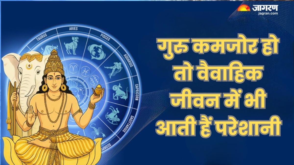 यदि कुंडली में गुरु ग्रह कमजोर स्थिति में होता है, तो व्यक्ति के जीवन में कई प्रकार की समस्याएं आ सकती हैं। उसे धन और विद्या पाने में परेशानी होती है। पाचन तंत्र संबंधी रोग होते हैं और मान-सम्मान में कमी आ जाती है। दांपत्य जीवन में भी मधुरता नहीं रहती है।