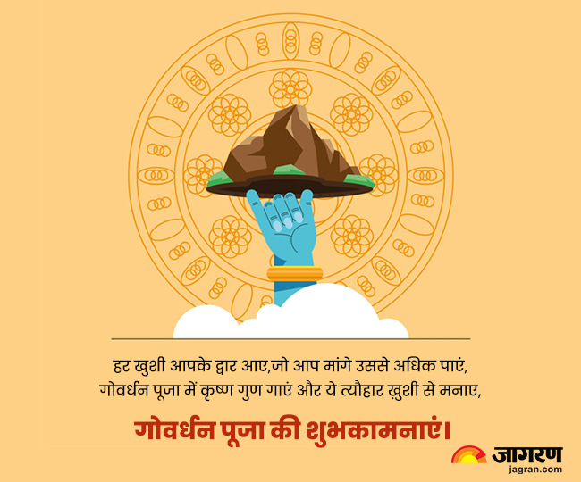 - गोवर्धन पूजा आपके लिए दिव्य आशीर्वाद लाए और आपको सभी नकारात्मकता से बचाए, गोवर्धन पूजा की शुभकामनाएं।