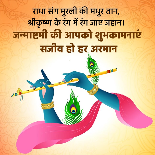 - कृष्ण की मुरली की धुन, आपके जीवन में प्रेम और भक्ति भर दे, जन्माष्टमी की शुभकामनाएं।