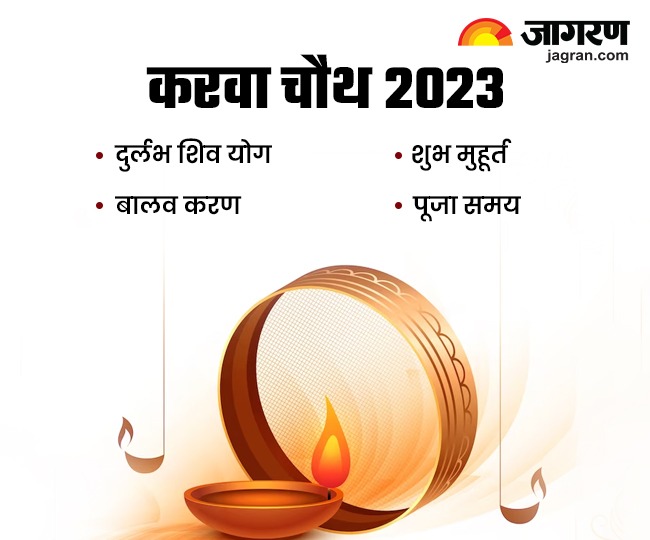 धर्म डेस्क, नई दिल्ली | Karwa Chauth 2023: हर वर्ष कार्तिक मास के कृष्ण पक्ष की चतुर्थी को करवा चौथ मनाया जाता है। तदनुसार, इस वर्ष 1 नवंबर को करवा चौथ है। इस दिन विवाहित महिलाएं करवा माता की विशेष पूजा-अर्चना करती हैं। साथ ही अखंड सुहाग हेतु करवा माता के निमित्त व्रत-उपवास रखती हैं। धार्मिक मान्यता है कि करवा चौथ का व्रत करने से विवाहित महिलाओं को सुख और सौभाग्य की प्राप्ति होती है। साथ ही पति की आयु लंबी होती है। अतः विवाहित महिलाएं भक्ति भाव से करवा चौथ का व्रत रखती हैं। ज्योतिषियों की मानें तो करवा चौथ पर दुर्लभ 'शिव' योग का निर्माण हो रहा है। इस योग में माता करवा की पूजा करने से व्रती को महादेव का आशीर्वाद प्राप्त होगा। उनकी कृपा से व्रती की सभी मनोकामनाएं यथाशीघ्र पूर्ण होंगी। आइए, शुभ मुहूर्त, पंचांग एवं पूजा का सही समय जानते हैं-