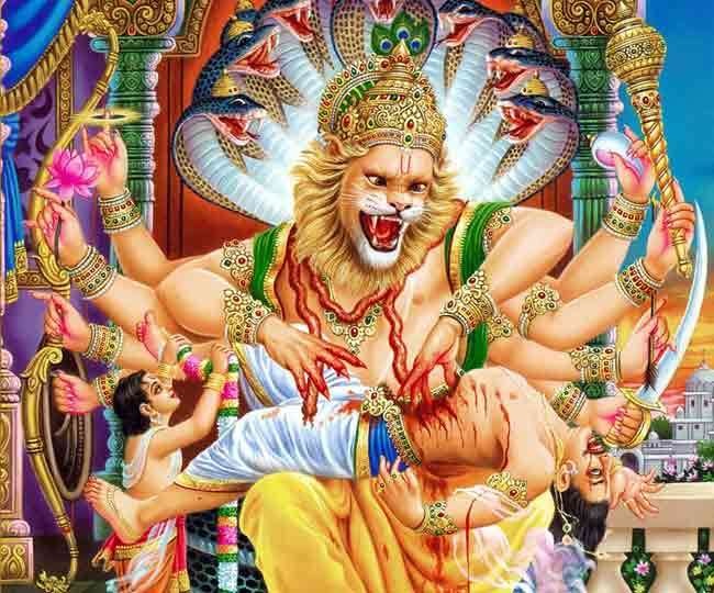 नई दिल्ली, अध्यात्म डेस्क। Narasimha Kavacham: भगवान नृसिंह श्री हरि विष्णु के अवतार हैं। उनका स्वरूप बेहद शक्तिशाली है। कहा जाता है, वे अपने भक्तों की रक्षी हर हाल में करते हैं। भगवान नरसिम्हा को आधे मनुष्य और आधे शेर के रूप में दर्शाया गया है, उनका धड़ मानव जैसा और निचला शरीर, शेर के चेहरे जैसा हैं। धार्मिक मान्यताओं के अनुसार, वे भगवान विष्णु के सबसे उग्र रूपों में से एक हैं, जो सभी नकारात्मक ऊर्जाओं से अपने भक्तों की रक्षा करते हैं, जो लोग किसी बड़ी बाधा से पीड़ित हैं, उन्हें भगवान नृसिंह की पूजा अवश्य करनी चाहिए, जिससे उनके जीवन की सभी नकारात्मकता का अंत हो सके।