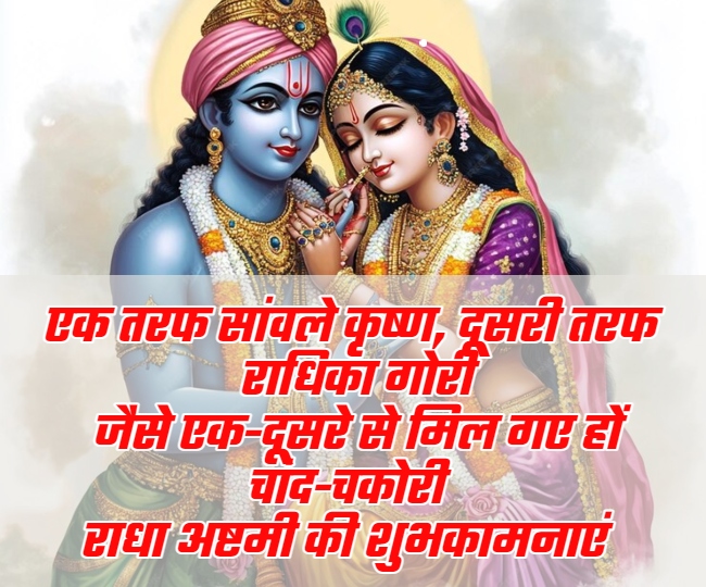 धर्म डेस्क, नई दिल्ली। भगवान श्रीकृष्ण के नाम से पहले राधा जी की नाम लिया जाता है, क्योंकि ऐसा माना जाता है कि केवल राधा नाम जपने से ही भगवान श्रीकृष्ण प्रसन्न हो जाते हैं। ऐसे में आप राधा अष्टमी (Radha Ashtami 2024 Greeting) के शुभ अवसर पर अपने प्रियजनों, मित्रों और परिवारजनों को राधा अष्टमी की शुभकामना संदेश भेजकर उनके लिए यह पर्व और भी खास बना सकते हैं।