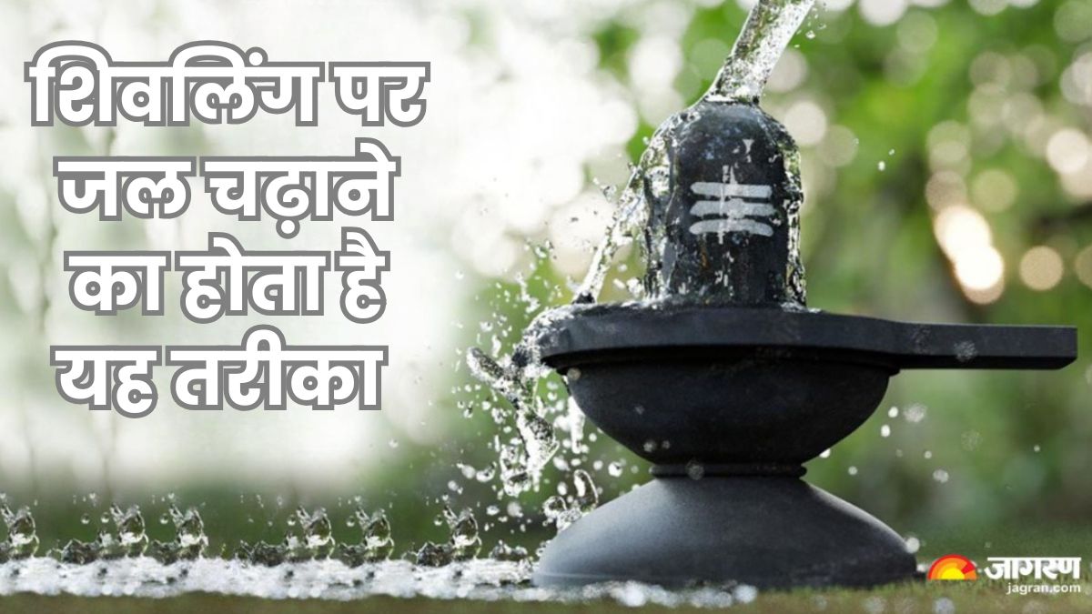 शिवलिंग पर जल चढ़ाने के लिए पूर्व या उत्तर-पूर्व दिशा की ओर मुख करके खड़े हों। इसके बाद "ॐ नमः शिवाय" का जाप करते हुए सबसे पहले शिवलिंग दाएं हिस्से पर जल चढ़ाएं। यह गणेश जी का स्थान माना जाता है। इसके बाद शिवलिंग के बाई तरफ जल चढ़ाएं, जो भगवान कार्तिकेय का स्थान है।