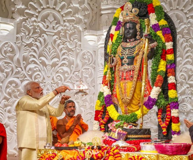 धर्म डेस्क, नई दिल्ली। Ram Mandir: सनातन धर्म में भगवान की प्रतिमा को सुंदर वस्त्रों और आभूषण से सजाया जाता है। ताकि भगवान की प्रतिमा खूबसूरत लगे। भगवान को सोने के आभूषणों की मदद से सजाने के पीछे सांस्कृतिक और सांप्रदायिक मान्यताएं हैं। भगवान रामलला को भी सोने के आभूषणों से खूबसूरत तरीके से सजाया गया है। पौराणिक कथाओं के अनुसार, सोना देवी-देवताओं का प्रिय माना गया है। आपकी जानकारी के लिए बता दें कि भगवान की प्रतिमा को अधिकतर सोने के गहने किसी खास अवसर पर पहनाएं जाते हैं। जैसे- धार्मिक समारोह, पूर्णिमा और पर्व आदि।